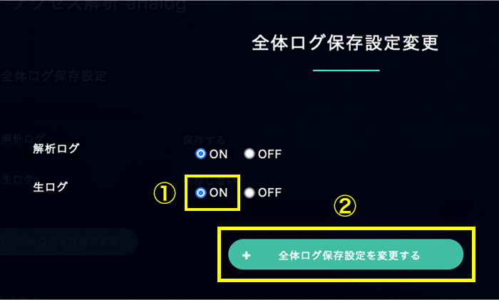 2. 生ログ「ON」にチェックし、「設定を変更する」をクリック