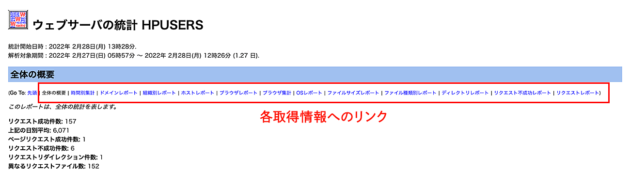 解析ログは、Webサイトへのアクセス情報をWebページとして表示します。