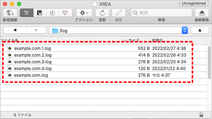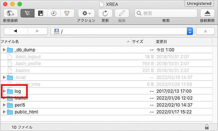 最上位階層にある「log」フォルダをクリックします。
