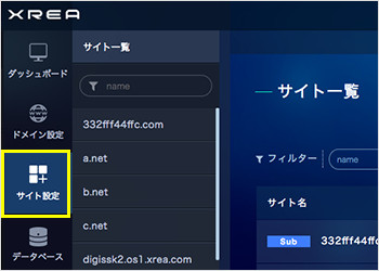 コントロールパネルに「ログイン」後、左メニューにある「サイト設定」をクリックします。