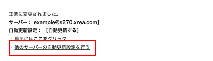 「正常に変更されました」と表示されたら「他のサーバーの自動更新設定を行う」をクリックします。