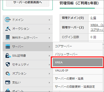 1. 左メニューの「XREA」をクリック