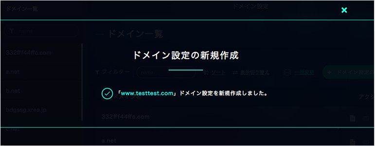 右側にある「ドメイン設定の新規作成」ボタンをクリックします。