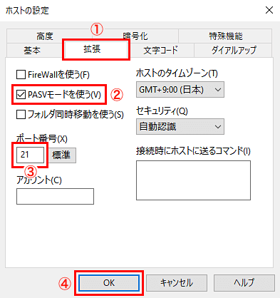 ②「PASVモードを使う」にチェック