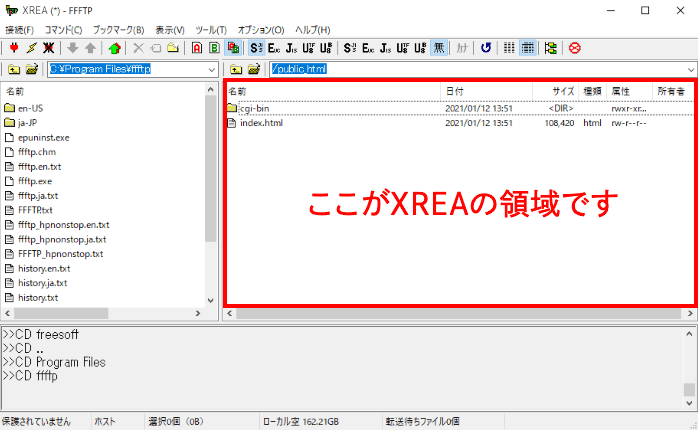右側がXREAサーバーの領域となります。