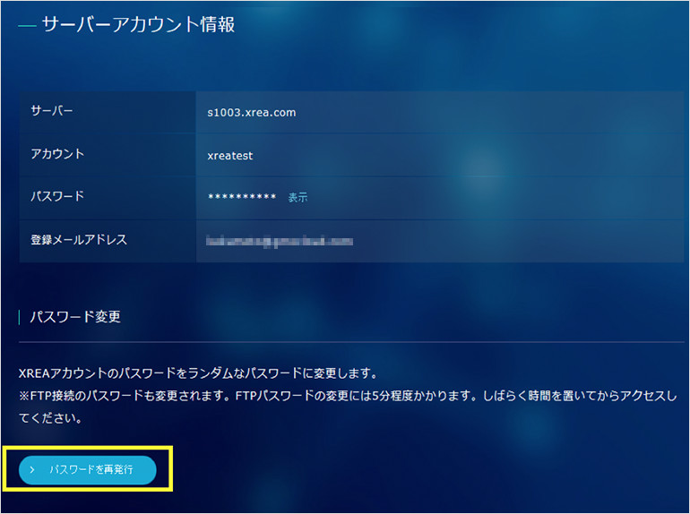 サーバーへのログインパスワードとFTPパスワードは同一の文字列となります。