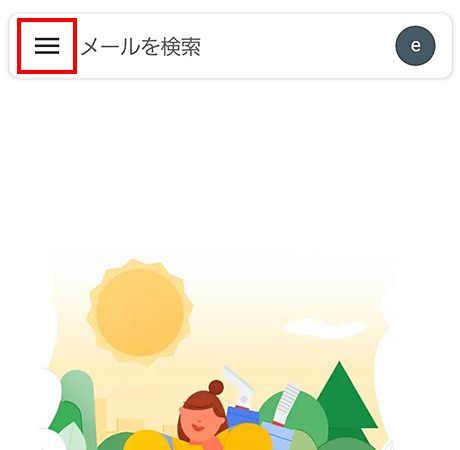 Gmailアプリを開き、左上のアイコン「≡」をタップします。