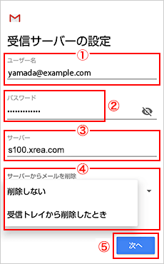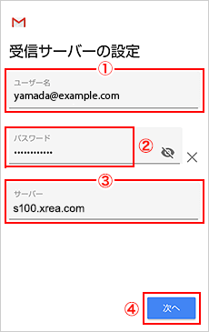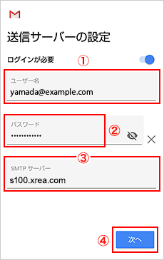XREAで新規作成したメールアドレスを、Android(OS 10)でGmailアプリを利用してメールの送受信ができるようにする設定です。