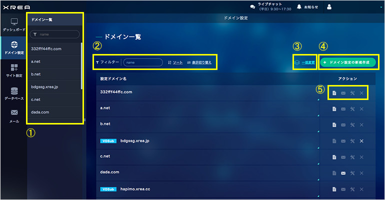 ① ドメイン一覧