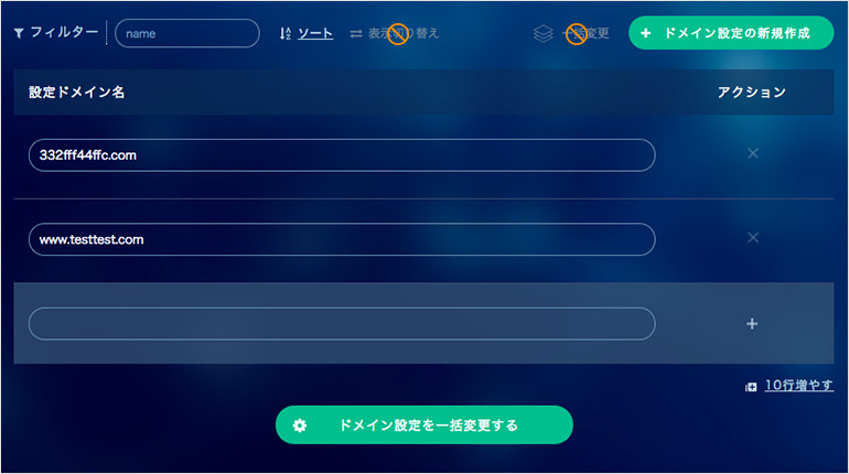 一括変更のテーブルに切り替えます。複数のドメインを一度で編集したい場合におすすめです。