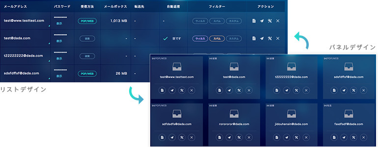 表示を「リストデザイン」と「パネルデザイン」に切り替えることができます。