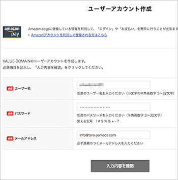 バリュードメインでドメインの登録やサーバーの利用をするには、ユーザー登録が必要です。