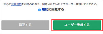 必ず会員規約をご確認ください。会員規約に同意いただける場合は、「規約に同意する」にチェックを入れていただき、「ユーザー登録」を押してください。