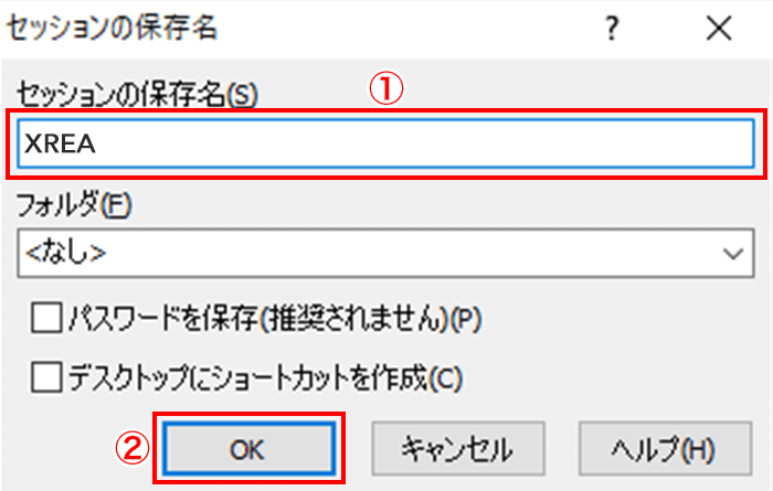 ①「セッションの保存名」に任意の文字列を入力し、