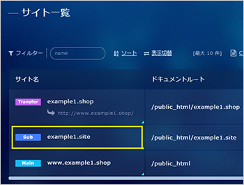※ご希望のドメインが表示されていない場合は、ドメイン設定の新規作成、およびサイト設定の新規作成を行ってください。 -