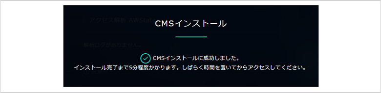 WordPressのインストールが完了しました。反映までに5分程度かかりますので、しばらくしてから次の手順にお進み下さい。