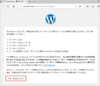 ブラウザからドメインへアクセスし、「さあ、始めましょう!」をクリックします。