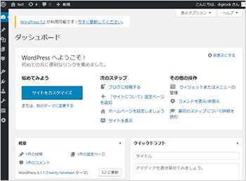 WordPress管理画面へのログインが完了しました。ウェブブラウザでドメインにアクセスしてみましょう。WordPressデフォルトテーマ画面が表示されていれば成功です。