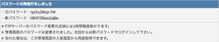 サーバーへのログインパスワードとFTPパスワードは同一の文字列となります。